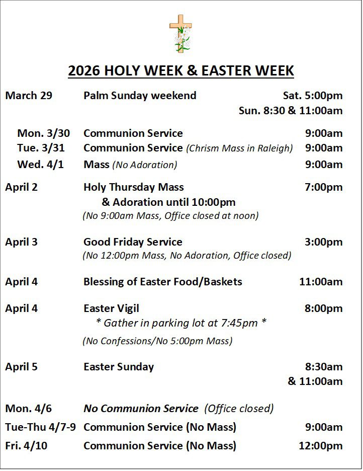 (9:00 Mass / No Adoration)