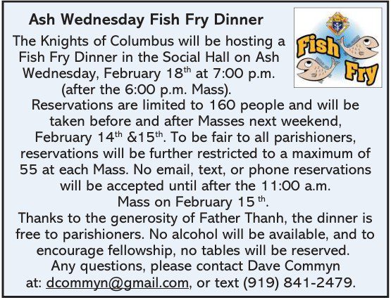 KofC Ash Wed 2026 Fish Fry