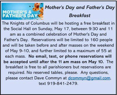 Mothers & Fathers Days Breakfast 5-17-26
